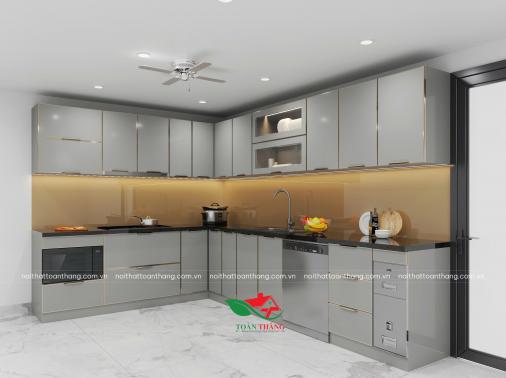 Tủ Bếp Inox 304 Cánh Kính Cường Lực Kết Hợp Màu Ghi Xám CL-006