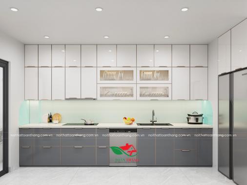 Tủ Bếp Inox 304 Cánh Acrylic Kết Hợp Màu Trắng Thuần Khiết và Màu Ghi Đậm IN-03