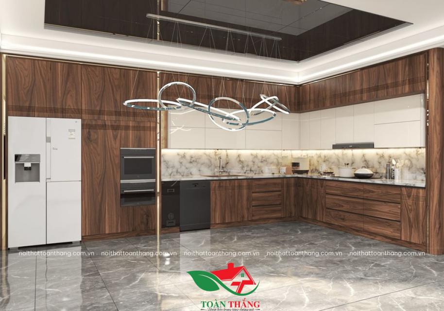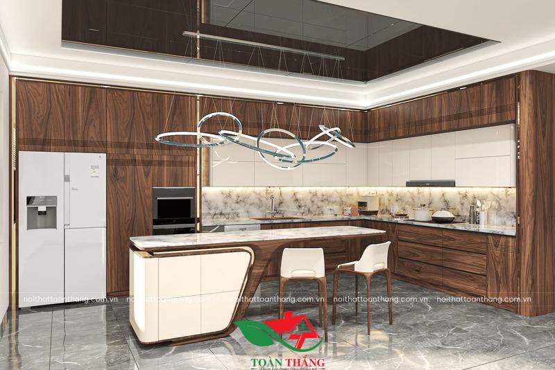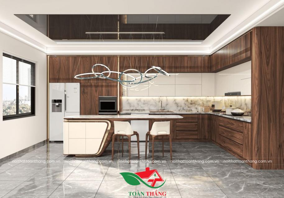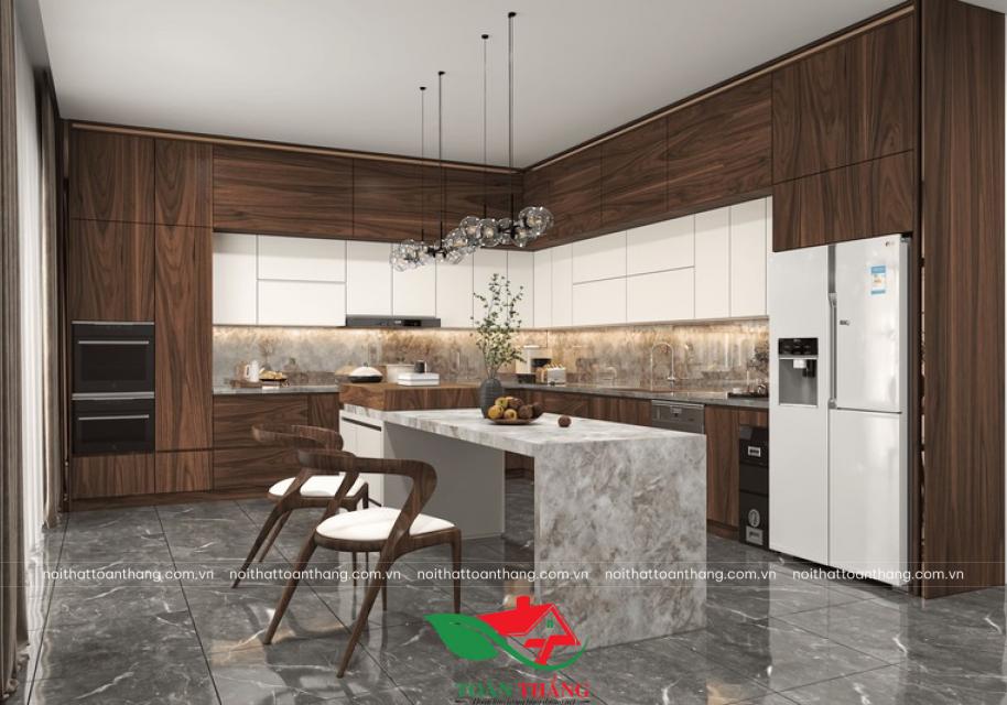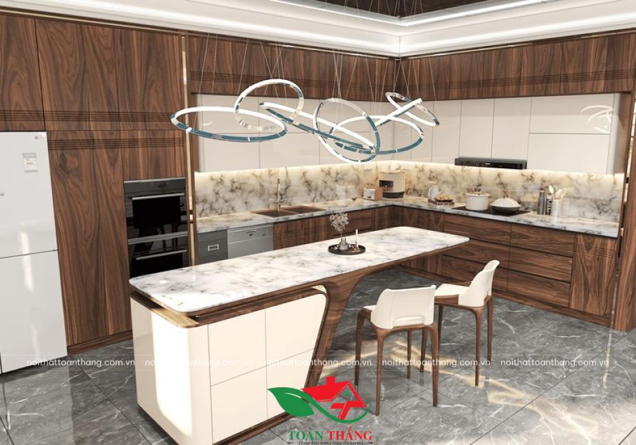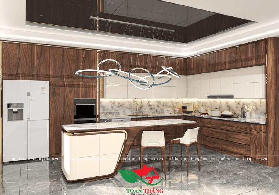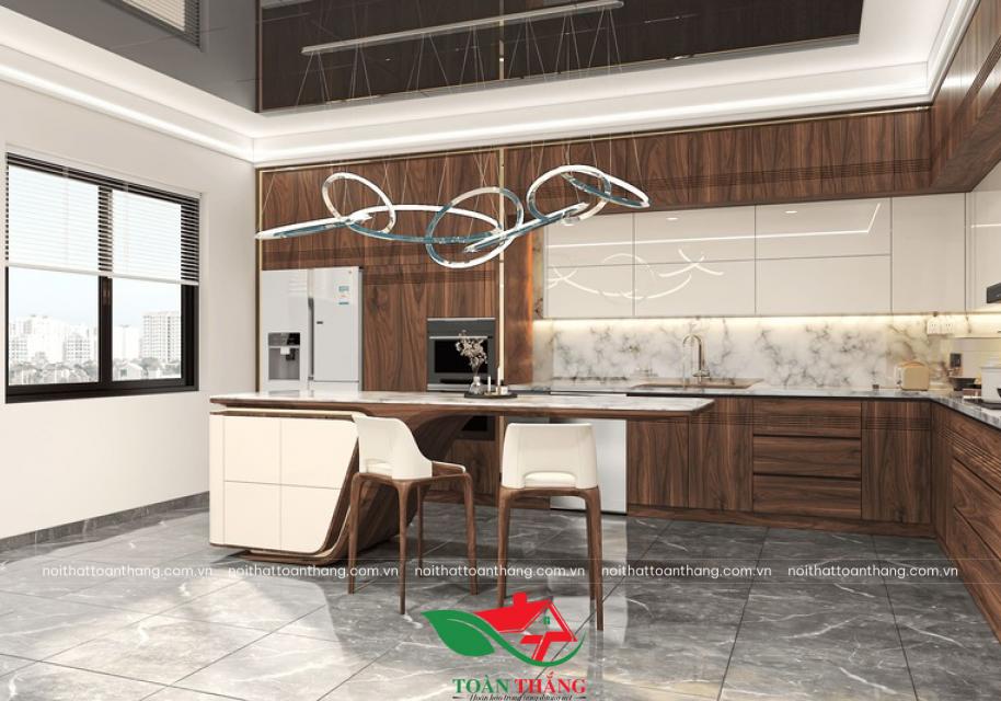 Vượt xa khỏi định nghĩa của một không gian nấu nướng thông thường, mẫu tủ bếp gỗ óc chó mới nhất từ Nội Thất Toàn Thắng là một tuyên ngôn về phong cách sống xa hoa và khác biệt.