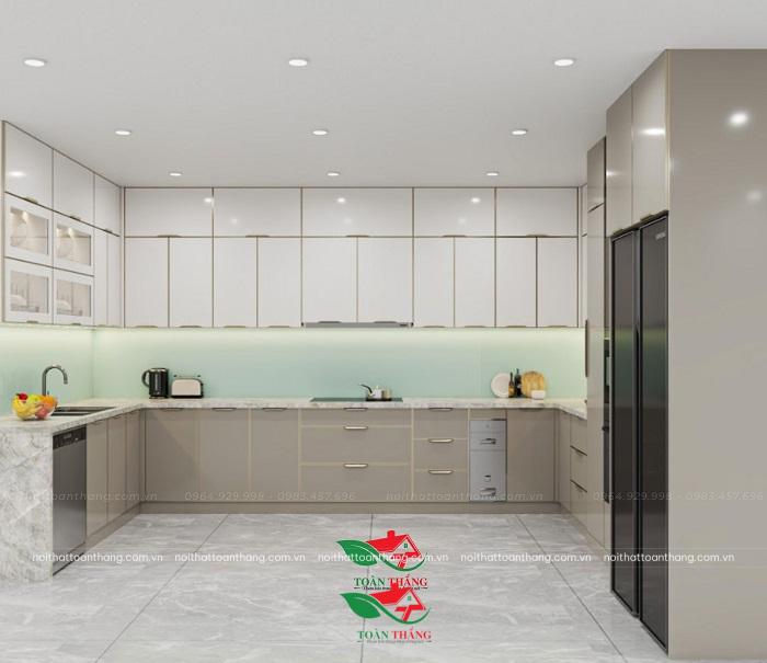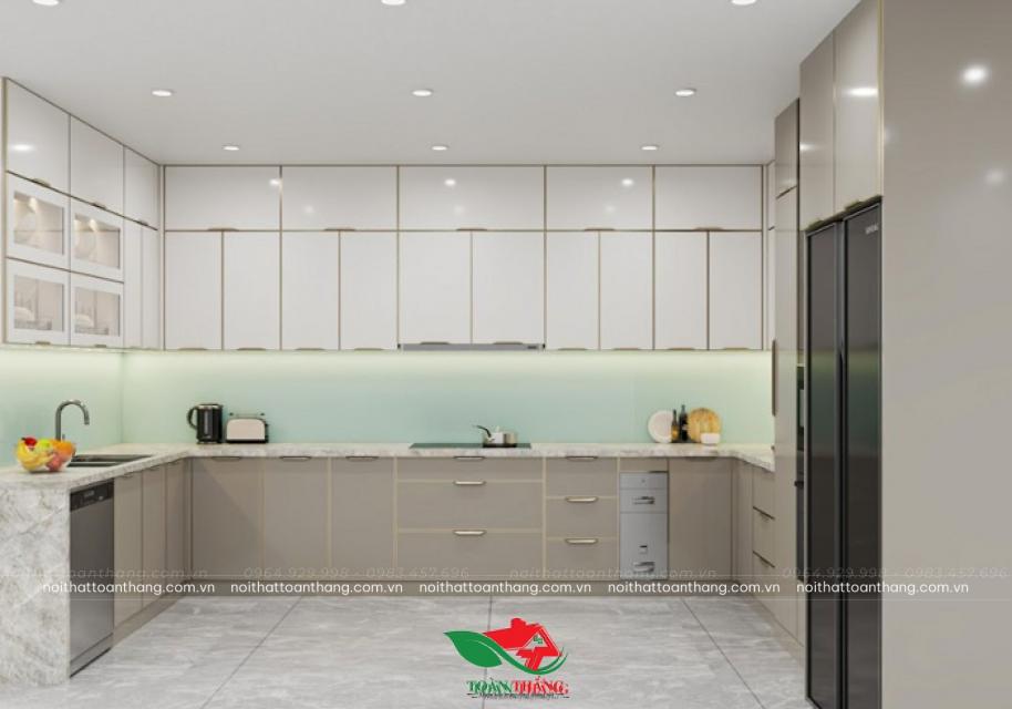 Bên cạnh lựa chọn chất liệu bền bỉ cùng thiết kế phù hợp với không gian của quý khách hàng. Nội Thất Toàn Thắng cũng tính toán kỹ lưỡng phần công năng để tối ưu hóa "tam giác vàng" trong nhà bếp (Bếp nấu - Chậu rửa - Tủ lạnh):