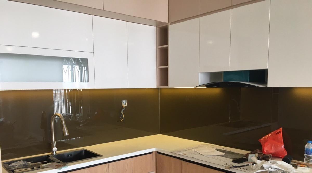 Cận cảnh kính ốp bếp sáng bóng - nổi bật căn bếp hiện đại