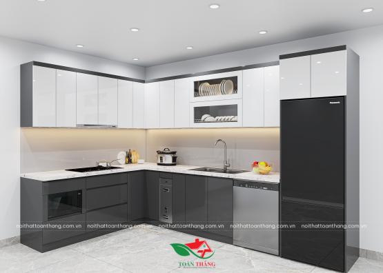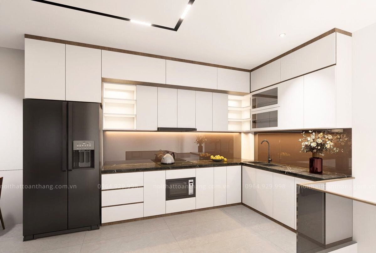 Tủ Bếp Inox Cánh Acyrlic Chữ L Màu Trắng Đen Hiện Đại