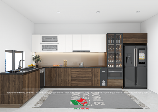 - Thiết kế tủ bếp dạng chữ L được xem là lựa chọn hàng đầu cho các căn hộ chung cư vì khả năng tận dụng góc chết, mở rộng không gian lưu trữ và tối ưu tam giác bếp (tủ lạnh – chậu rửa – bếp nấu).