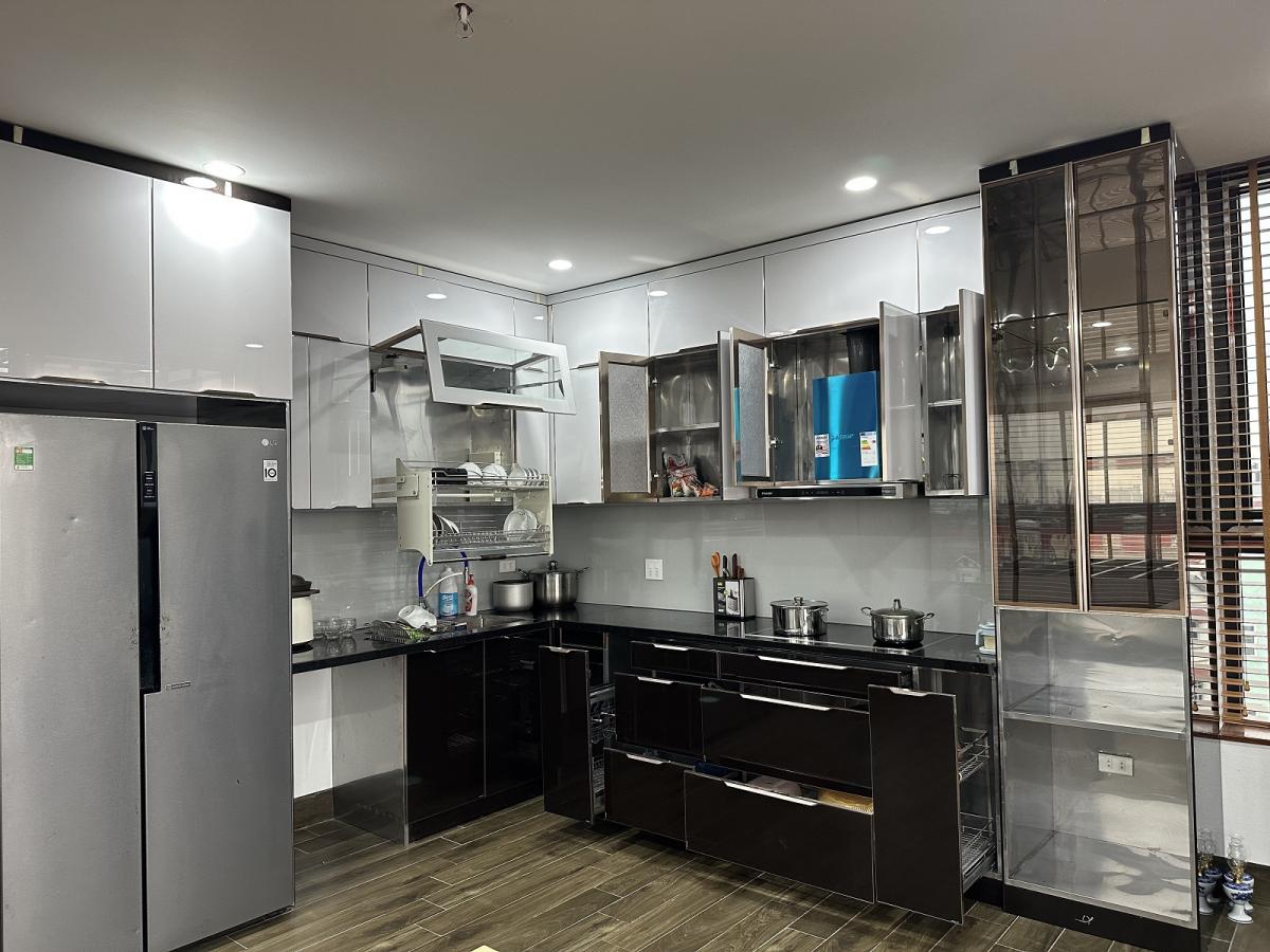 Thiết bị tích hợp: Lò vi sóng được đặt âm tủ ở khoang dưới một cách gọn gàng, vừa tầm tay với, an toàn hơn so với việc đặt trên mặt bàn đá chật chội.