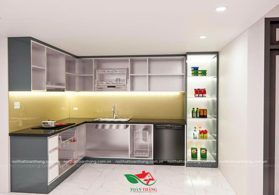 Tủ Bếp Inox Cánh Kính Kết Hợp Tủ Kho Thông Minh