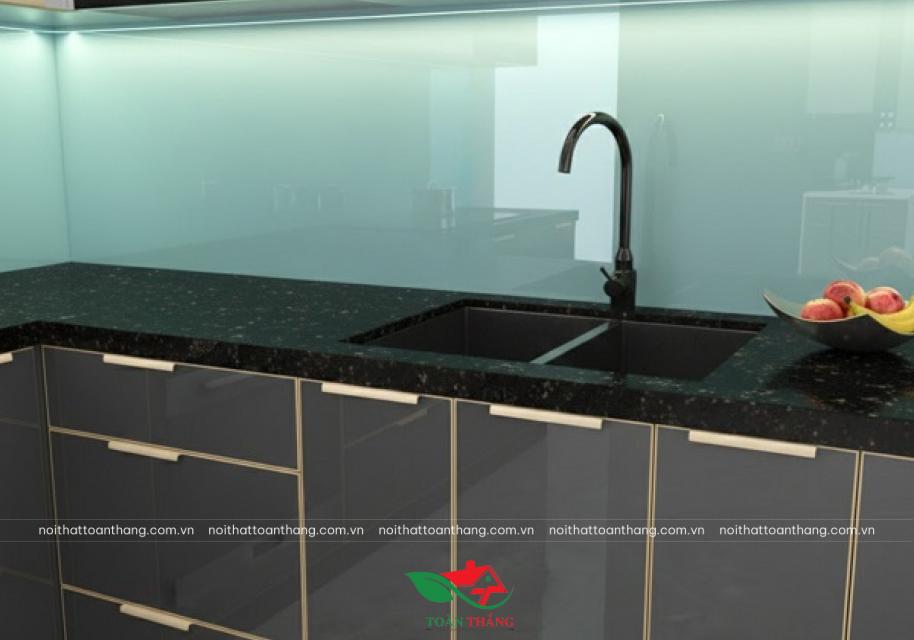 Mặt đá bếp màu đen vân mây vừa sang trọng,chịu lực tốt