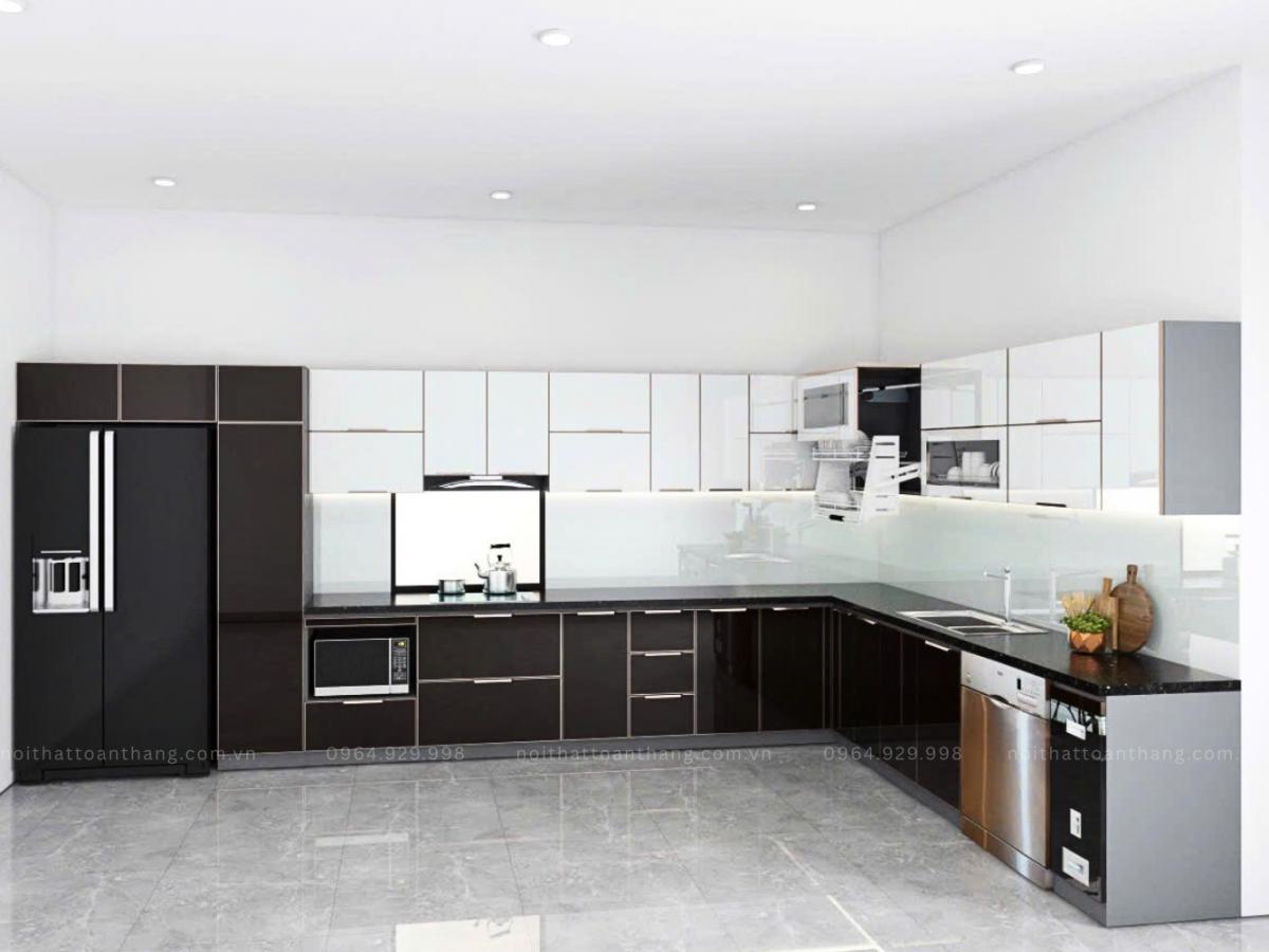 Trong xu hướng thiết kế nội thất hiện đại, không gian bếp không còn đơn thuần là nơi nấu nướng mà đã trở thành "trái tim" của ngôi nhà, nơi thể hiện gu thẩm mỹ tinh tế của gia chủ. Mẫu tủ bếp inox cánh kính với sự kết hợp kinh điển giữa hai gam màu Đen và Trắng dưới đây chính là minh chứng rõ nét nhất cho vẻ đẹp vượt thời gian, sự tiện nghi và độ bền bỉ tuyệt đối.