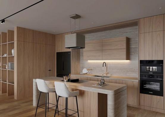 - Thiết kế: chữ I, L, U hay có đảo bếp