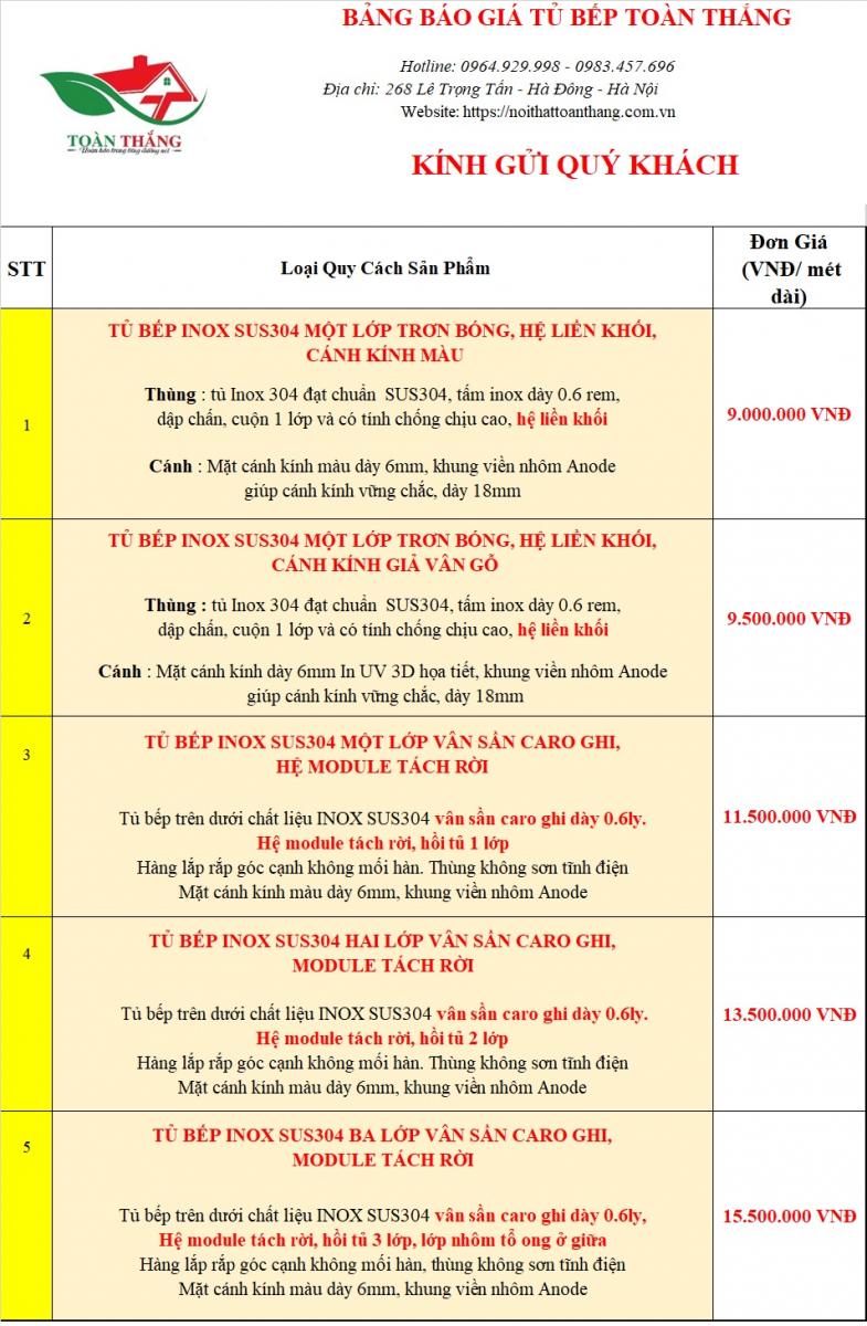 Tham khảo báo giá các loại tủ bếp Inox tại nội thất Toàn Thắng: