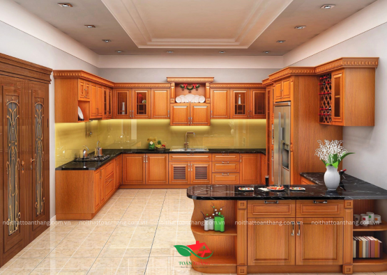 Tủ bếp trên dưới thùng gỗ Xoan Đào, mặt cánh gỗ Xoan Đào