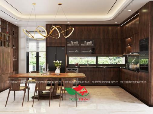 Tủ Bếp Gỗ Óc Chó Hiện Đại Kết Hợp Bàn Ăn Sang Trọng Và Đầy Tinh Tế