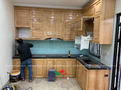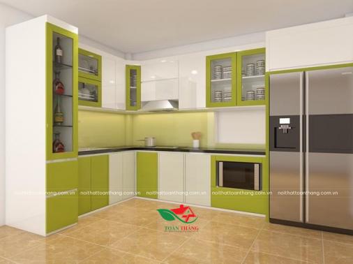 Tủ Bếp Gỗ MDF Cốt Xanh Chống Ẩm An Cường Phối Màu Tạo Điểm Nhấn