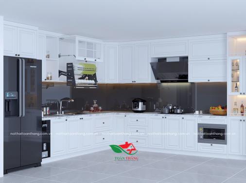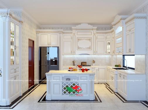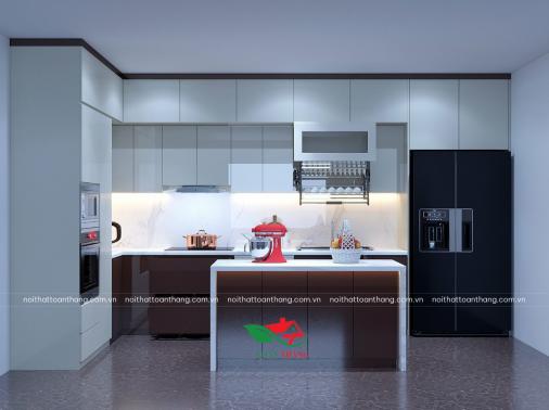 Tủ Bếp Acrylic An Cường Có Ban Đảo Với Màu Trắng Làm Chủ Đạo