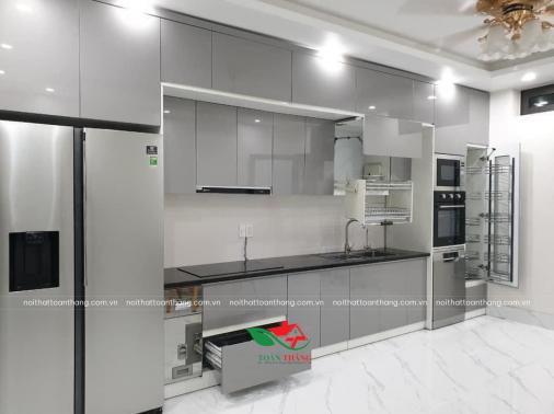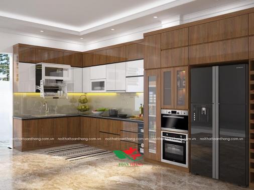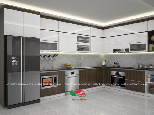Tủ Bếp Acrylic An Cường Tủ Trên Màu Trắng Tủ Dưới Màu Vân Gỗ