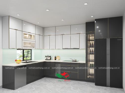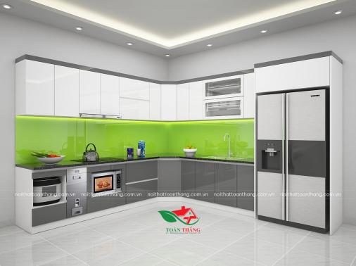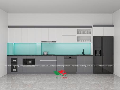 Tủ Bếp Inox 304 Mặt Cánh Kính Cường Lực Màu Trắng - Xám Đậm