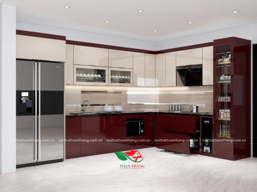 Tủ Bếp Inox 304 Mặt Cánh Kính Cường Lực Kết Hợp Màu Đỏ Đun
