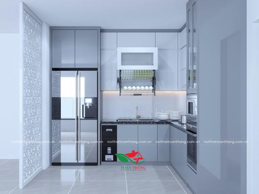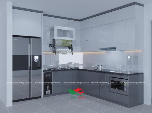 Tủ Bếp Inox Cánh Acrylic Kết Hợp Màu Xám Khói IN-02