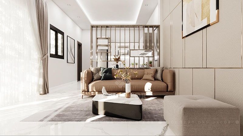 Không gian phòng khách được thiết kế phù hợp và hài hòa với toàn bộ không gian nhà. Vì vậy không thể thấy phòng khách rộng quá mà ta lại chia nhỏ thành các phòng khác. Như thế theo phong thủy là chúng ta đang chia tài lộc của mình ít dần đi. Bên cạnh đó không gian phòng khách khi bị chia nhỏ khiến luồng không khí bị hạn chế khi lưu thông.