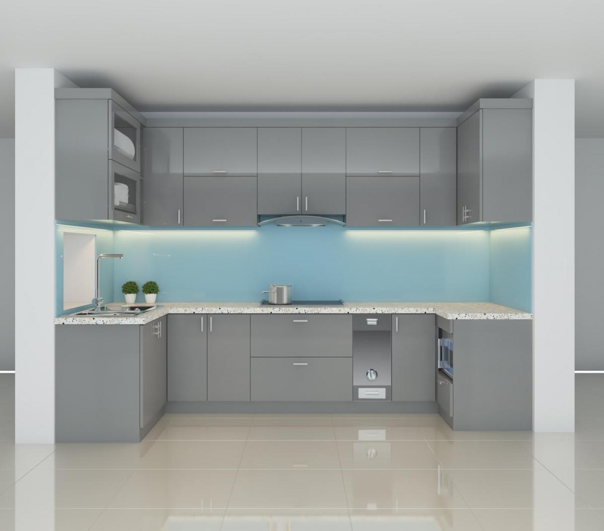 Tủ Bếp Thùng Inox 304 Cánh Acrylic hình chữ U