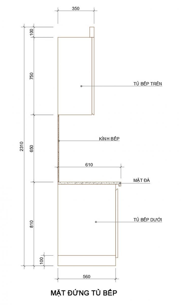 Kích thước của tủ bếp: