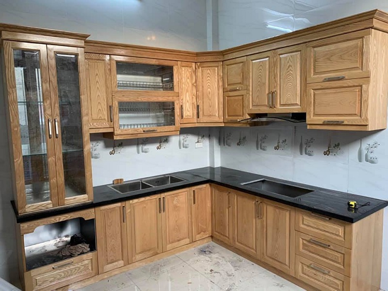 - Khung tủ bếp làm từ gỗ sồi nga nhập khẩu