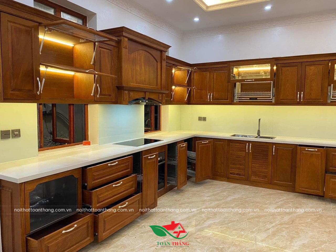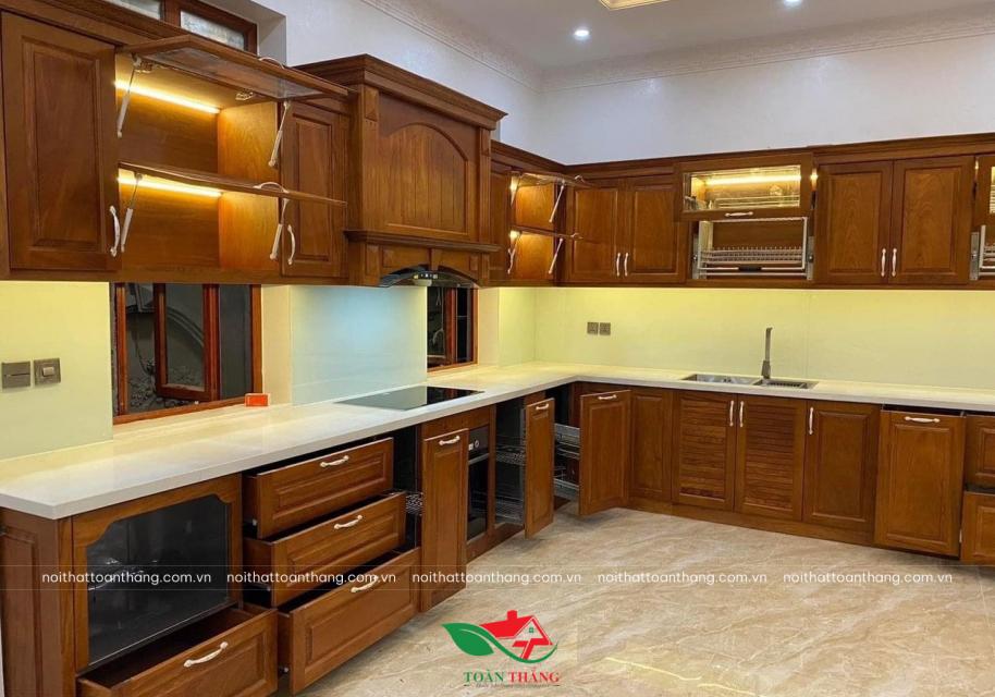 Mua tủ bếp inox 304 cánh gỗ xoan đào chất lượng tại Nội thất Toàn Thắng