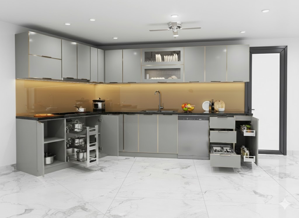 1. Bố cục chữ L tối ưu – Hiệu quả cho mọi thao tác