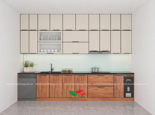 Tủ Bếp Inox Cánh Kính Kết Hợp Với Mặt Kính Vân Mây
