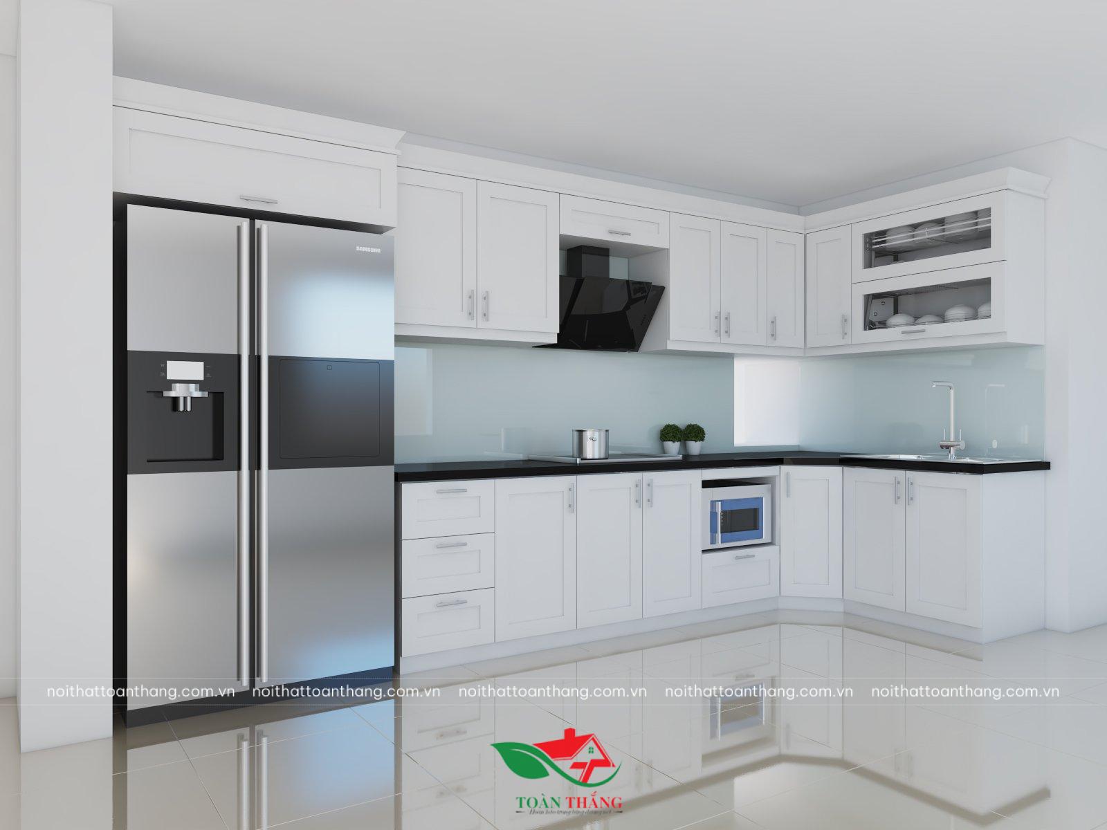 - Về mẫu mã thiết kế, không ai có thể phủ nhận được sự sang trọng và đẳng cấp của mẫu tủ bếp này. Được phun sơn chất lượng cao, màu sơn trắng sáng làm cho không gian bếp cũng thêm tươi mới hơn.