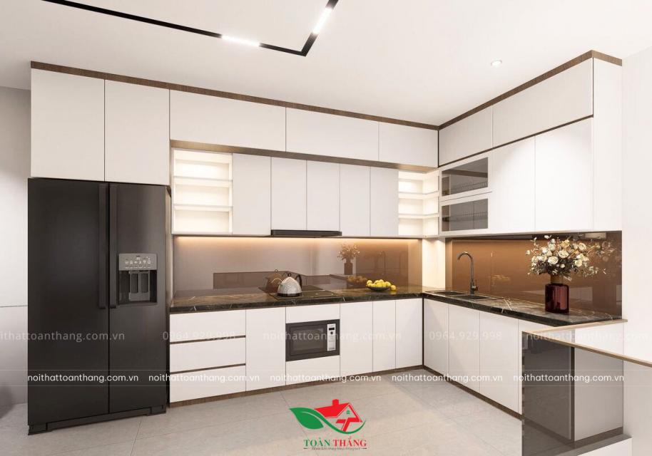 Tủ Bếp Inox Cánh Acyrlic Chữ L Màu Trắng Đen Hiện Đại