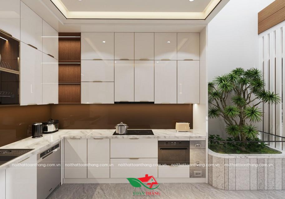 • Bố cục chữ L ôm trọn không gian bếp, tối ưu diện tích sử dụng