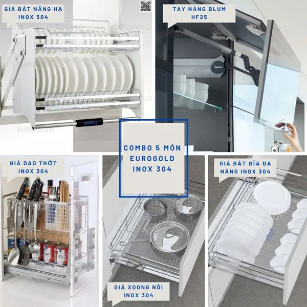 Cốt Tủ Inox 304: Cốt tủ bên trong (khung và thùng) được làm bằng inox 304, đảm bảo khả năng chống nước, chống mối mọt và chống gỉ sét tuyệt đối. Điều này là tiêu chí hàng đầu cho độ bền của tủ bếp trong môi trường nhiệt độ và độ ẩm cao.
