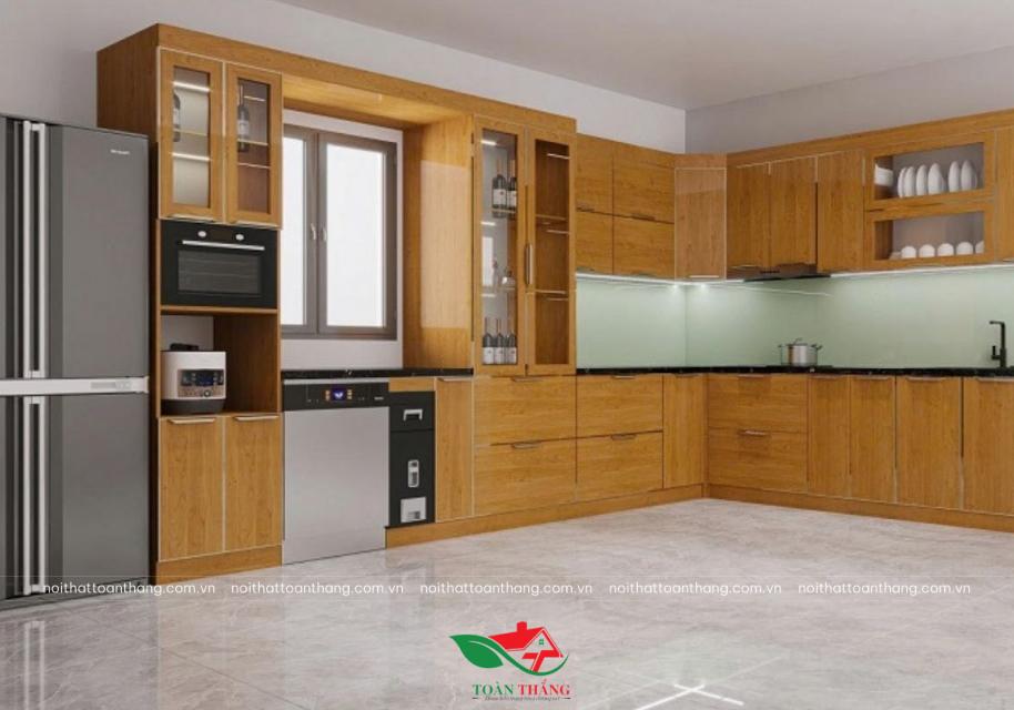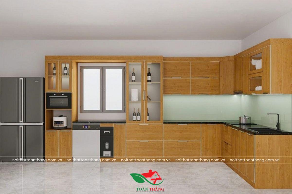 Thiết kế tủ bếp chữ L ôm trọn hai mặt tường