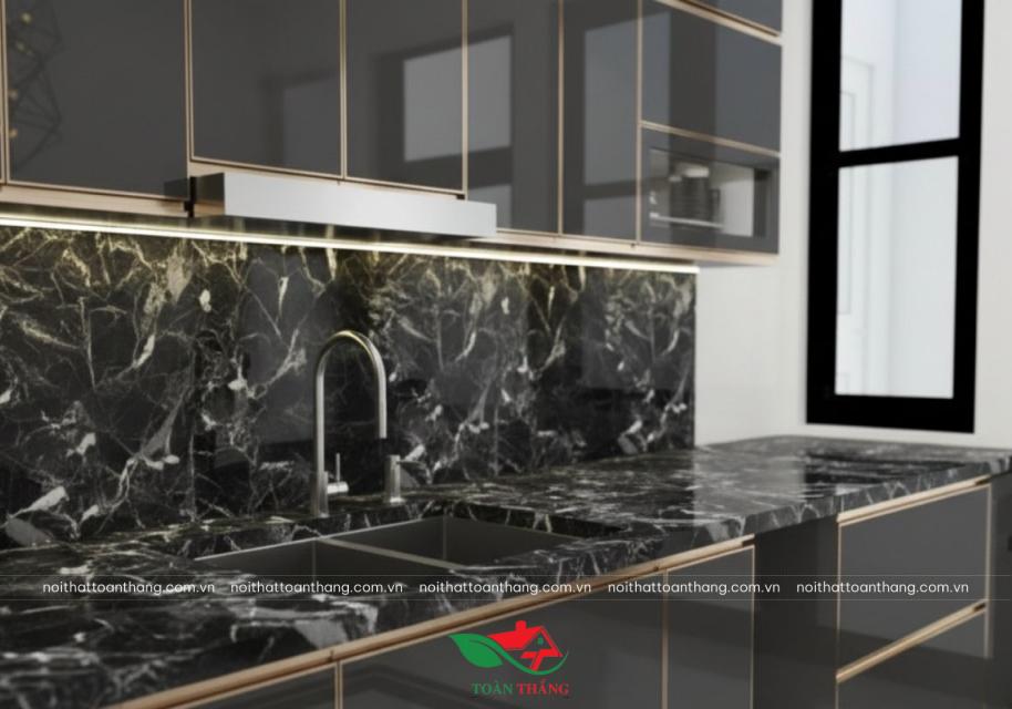 Bàn bếp sử dụng đá đen vân mây sang trọng