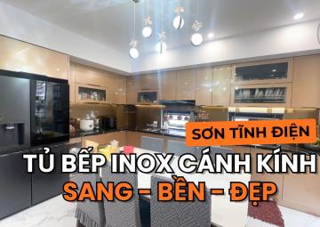 Tủ bếp Inox cánh kính thùng sơn tĩnh điện nhà Chị Nga ở Hà Nội